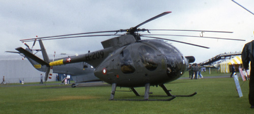 Middle Wallop in July 1986. The lower one is an updated Hughes 500M,